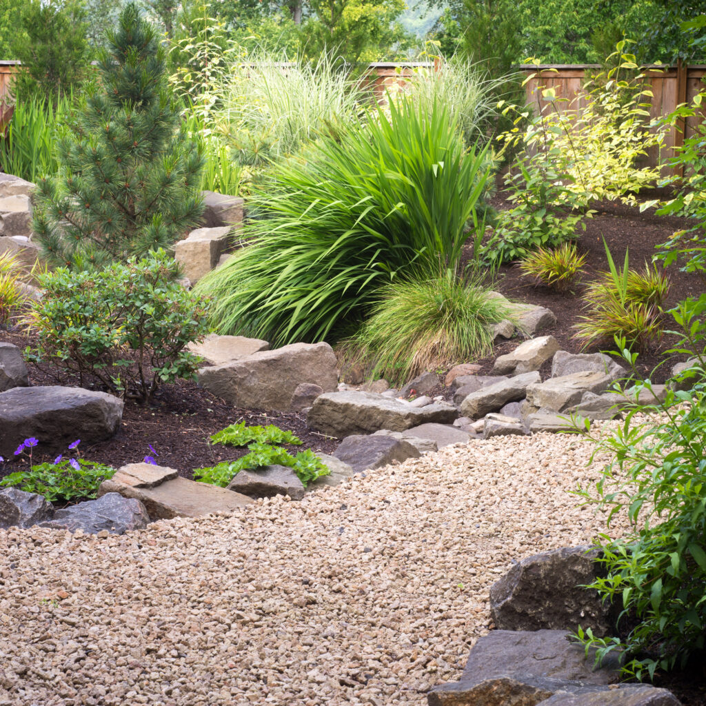9. Multi-Zone Yard with Mulch and Rock Transitions