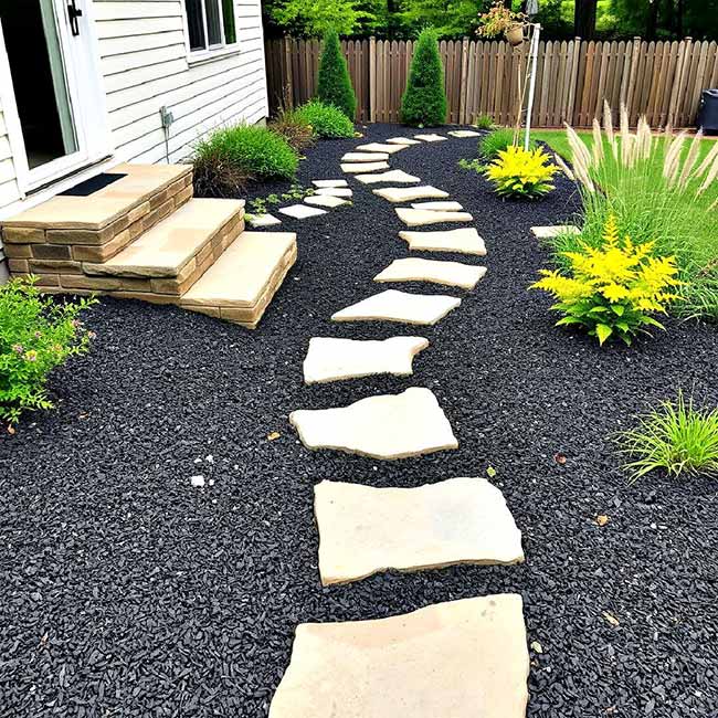 For those who love tranquility and simplicity, combining black mulch with white rock landscaping lends itself perfectly to zen-inspired gardens. This style emphasizes clean lines, open spaces, and natural materials to create a calming retreat in your yard.