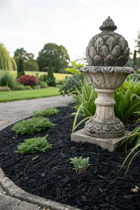 If you have a statue that’s been hiding in the weeds, you need to try this. It’s wild how much better a piece of garden decor looks when it’s not competing with a messy background. The black mulch acts like a spotlight for your favorite pieces.