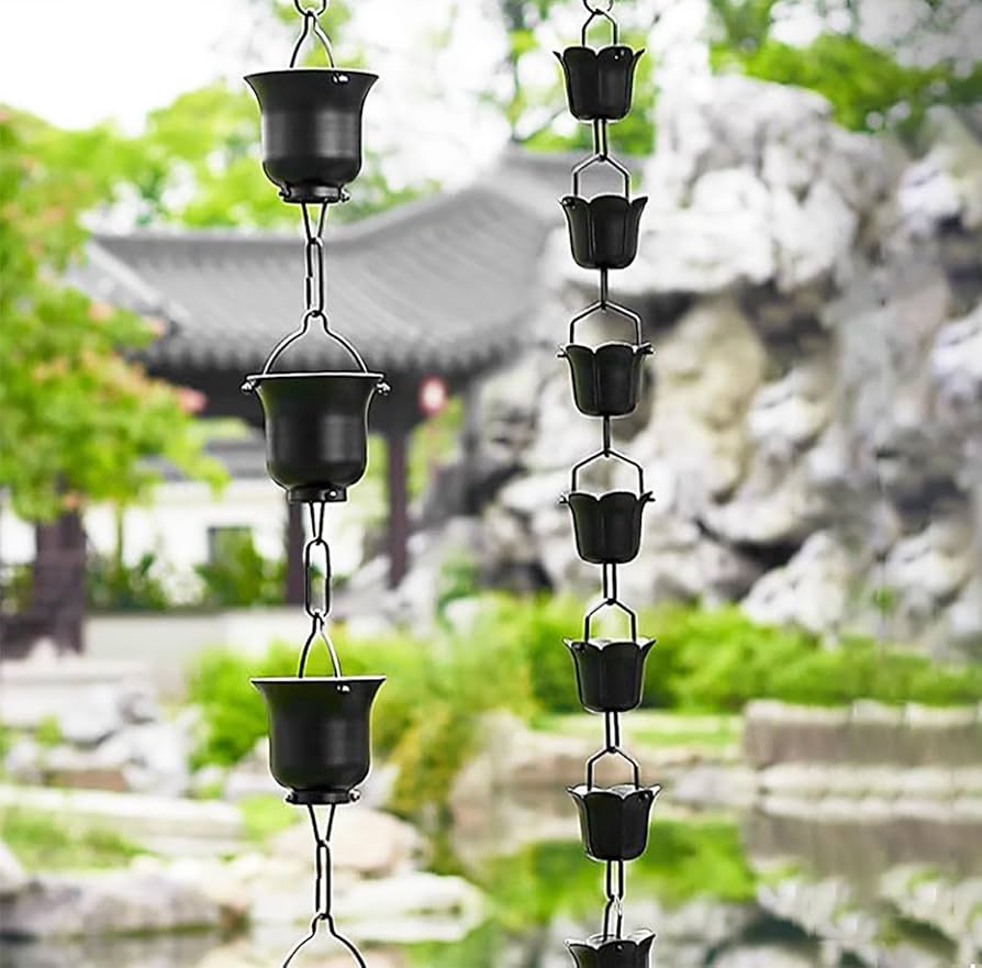 For those looking to add a touch of nature to their outdoor decor, a floral-shaped rain chain is a beautiful choice. These rain chains feature delicately designed flower shapes made from copper, brass, or even ceramic. The flowers catch the water and gently guide it downward, adding a whimsical feel to your backyard or porch.