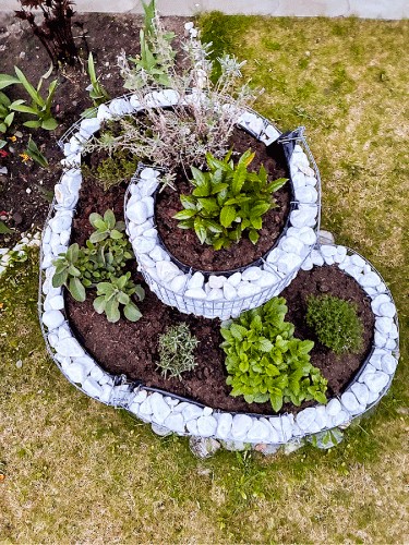 This one is a showstopper, but it’s also practical. A spiral layout creates different sun and moisture zones as you move around the curve, which means you can grow plants with slightly different needs in one compact area.